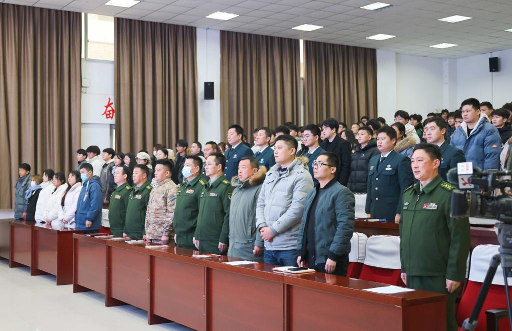 本站讯  12月28日下午,开封市2024年上半年征兵集中宣传活动在365官网行政楼第一会议厅举行。开封军分区大校司令员朱宝红,校党委书记谭贞,市政府副市长袁钢,军分区大校副司令员、市征兵办公室主任魏家伟,市教育体育局二级调研员王晓波,副校长万是明,军分区动员处上校处长、市征兵办公室副主任刘磊,军分区政治工作处上校主任江同山出席活动。开封市城区各人武部主官,开封各高校征兵工作站站长,365官网师生代表参加活动。活动由魏家伟主持。