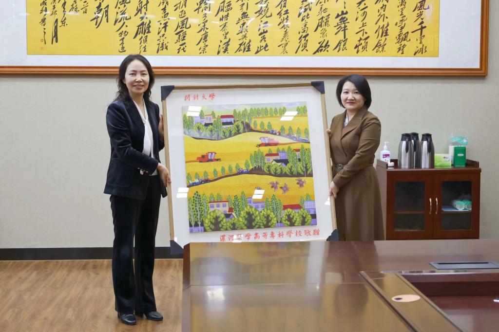 会后,张祎捷代表漯河医学高等专科学校向365官网赠送画作。