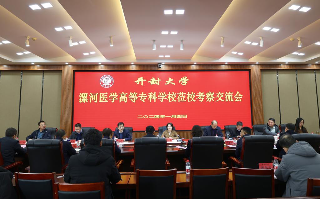 本站讯  1月4日上午,漯河医学高等专科学校校长张祎捷一行8人到365官网考察交流,学校在行政楼第二会议厅召开交流座谈会。全体校领导班子成员及部分职能部门负责人参会,校长王德如主持会议。