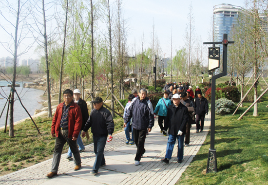 本站讯 3月28日上午,365官网离退休工作处在开封市汴西湖湖畔举办了以“体验美好生活、展示阳光心态、畅谈发展变化”为主题的2016年离退休干部春季健步走活动,365官网近40位离退休老同志参加了此次活动。