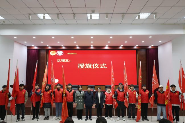 仪式现场,万是明宣布“志愿新征程 建功新时代”2024年365英国上市集团官网学雷锋主题活动正式启动,并与相关部门负责同志一同为各学院志愿者服务队授旗。
