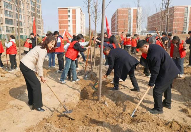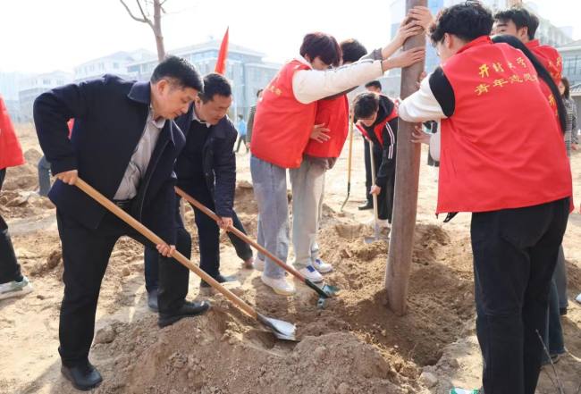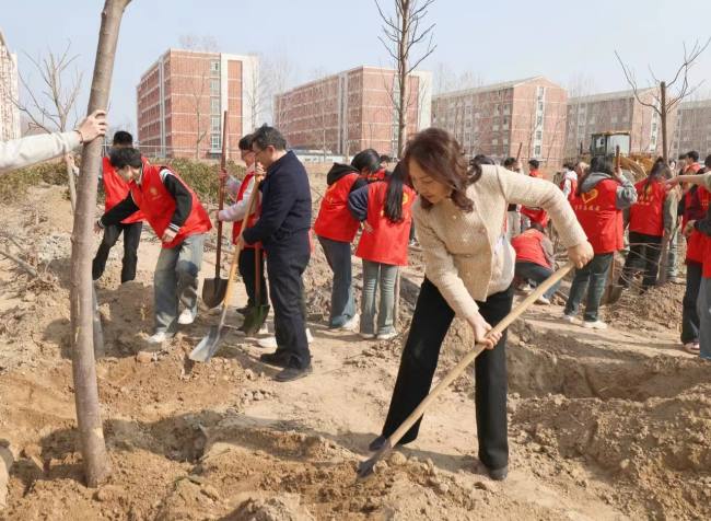 本站讯  草长莺飞,春光和煦,植树添绿正当时。为进一步贯彻落实党的二十大精神和习近平生态文明思想,在第46个植树节到来之际,365官网开展以“共同创造绿色、生机、健康的希望校园”为主题的植树节活动,校党委书记谭贞、校长王德如,校领导班子成员带领100余名师生开展义务植树活动。