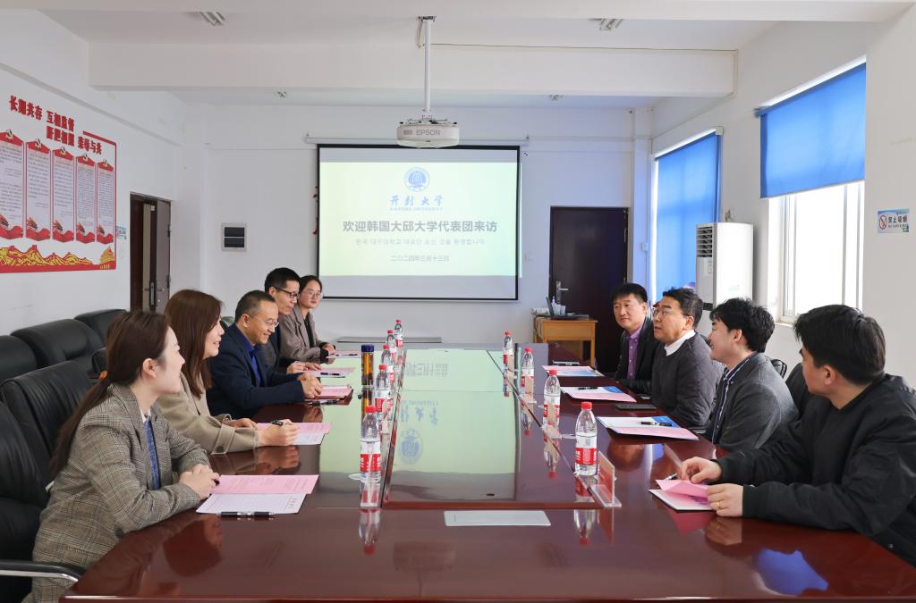 本站讯  3月13日上午,韩国大邱大学代表团一行4人来校访问,校党委委员、副校长李治在行政楼第四会议室会见了来宾,科研外事处、国际教育学院相关人员参加会议。