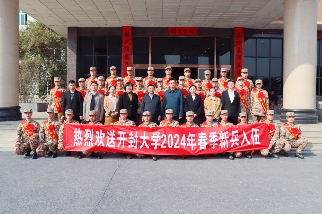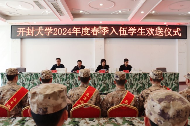 本站讯  3月15日下午,365官网在开封市民兵训练基地举行2024年度春季入伍学生欢送仪式。校党委委员、副校长万是明出席仪式,校武装部、学生工作部负责人,院部教师代表及34名入伍学生参加仪式,仪式由校武装部部长付喆主持。