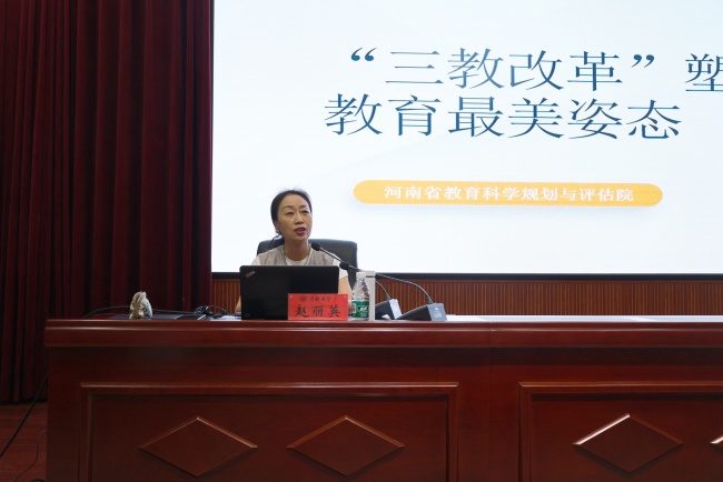 开班式结束后,赵丽英以《“三教改革”塑造职业教育最美姿态》为主题做了首场专题报告。