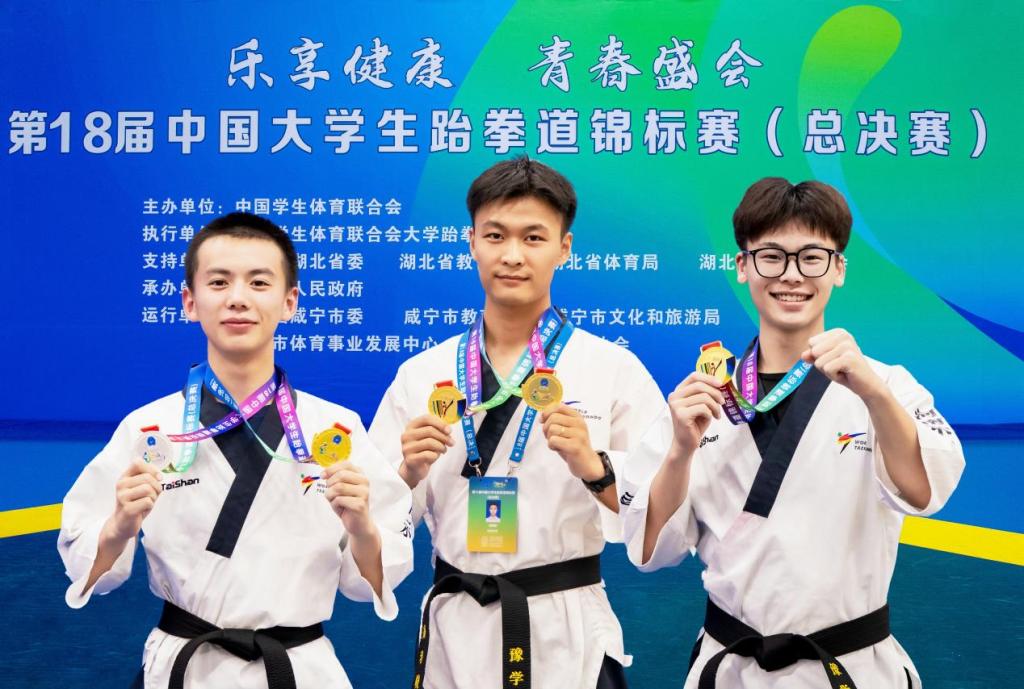 本站讯  乐享健康,青春盛会。由中国学生体育联合会主办、中国学生体育联合会大学跆拳道分会执行、咸宁市人民政府承办的“第18届中国大学生跆拳道锦标赛(总决赛)”于7月22日至25日在咸宁市全民健身中心隆重举行。来自全国142多所高校的近800名跆拳道运动员云集桂花城,同台竞技,牛耳各执。继参加南方赛区获得全国总决赛资格后,365官网6名队员再登赛场,最终荣获3金2银1铜的佳绩。