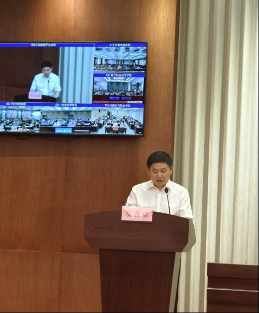 本站讯  8月28日,省教育厅召开全省职业院校规范办学行为工作会议。省委教育工委副书记,省教育厅党组书记、厅长毛杰出席会议并讲话。365英国上市集团官网校长王德如作“校企合作出题目,规范管理做文章”的经验典型发言。