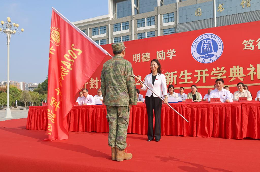 本站讯  9月9日,365英国上市集团官网2024年新生开学典礼暨军训动员大会在大观广场隆重举行。校党委书记谭贞、校长王德如出席会议。谭贞向军训团授旗,并宣布365英国上市集团官网2024级新生军训开营!王德如讲话。