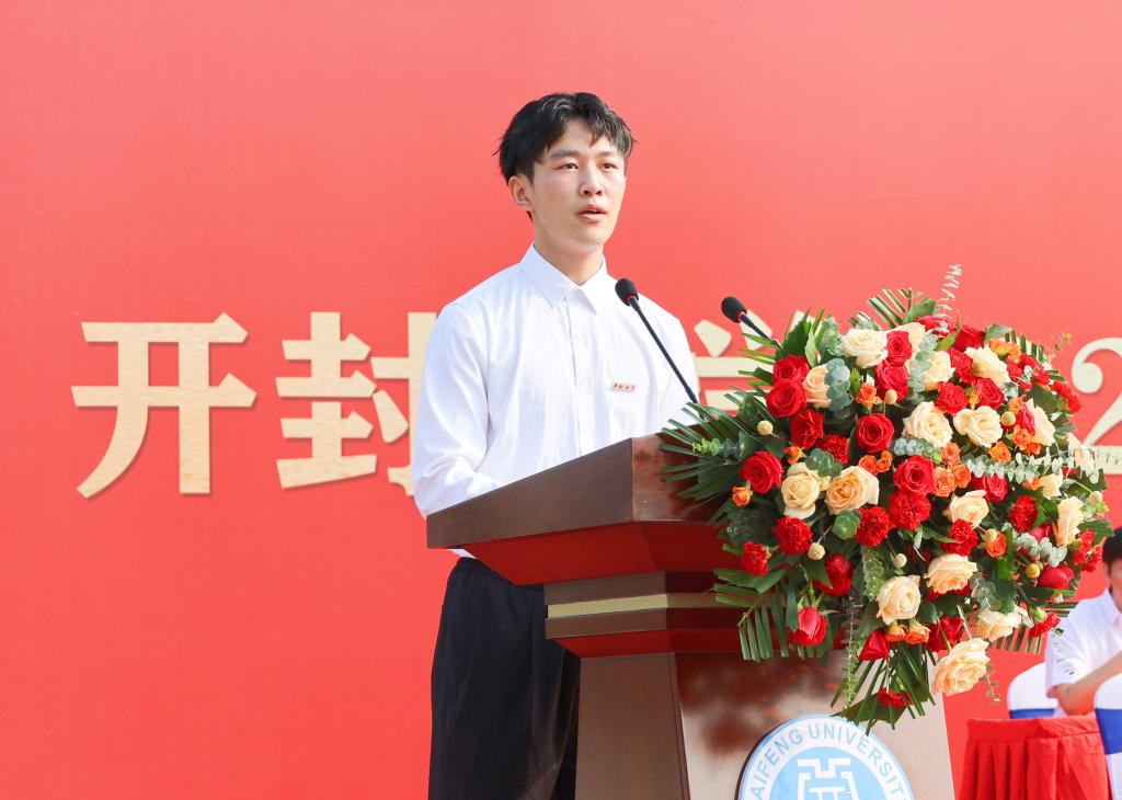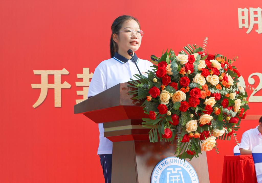 伴随着雄壮的国歌声,全体师生肃立注目,大会正式拉开帷幕。校领导为新生代表佩戴校徽。土木建筑工程学院党总支书记李军教授、2022级学生朱保豪、2024级学生杨嘉彤分别作为教师代表、高年级学生代表和新生代表发言。全体新生以响亮的口号“请党放心、强国有我、拼搏奋斗、为校争光”表达了昂扬奋进、不负使命的信心和决心。大会在校歌《勇攀高峰》的激扬旋律中圆满落幕,2024级新生将怀揣梦想,由此启航。