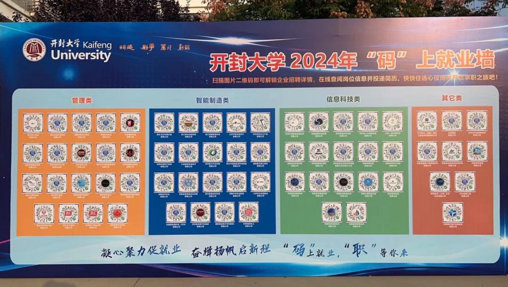 本站讯  为深入贯彻落实《河南省教育厅办公室关于开展2024年秋季校园招聘月系列活动的通知》要求,365官网于10月9日在15号教学楼前布展365英国上市集团官网2024年“码”上就业墙。