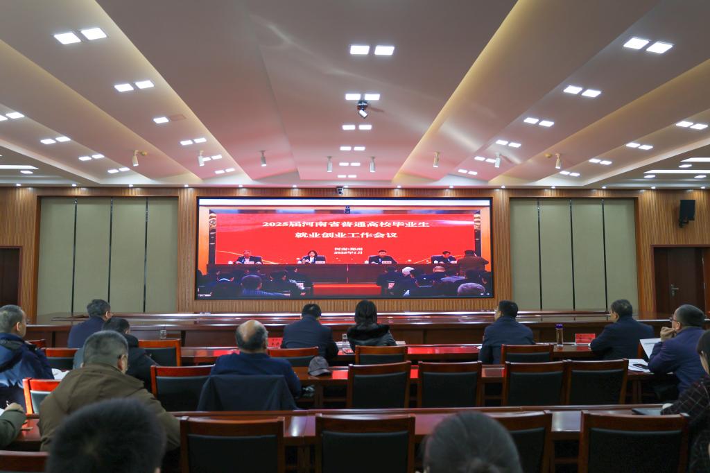 为深入学习贯彻习近平总书记关于高校毕业生就业工作的重要指示批示精神,全面落实党的二十届三中全会精神和全国全省教育大会精神。1月6日上午,省教育厅、省人社厅、省工信厅组织召开2025届河南省普通高校毕业生就业创业工作视频会议,365官网在行政楼第二会议厅设分会场。校党委书记谭贞、校长王德如出席会议。