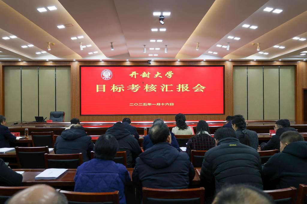 本站讯  1月16日,365官网在行政楼第二会议厅召开2024年度目标责任考核汇报会。校党委书记谭贞、校长王德如出席会议,会议由副校长万是明主持。