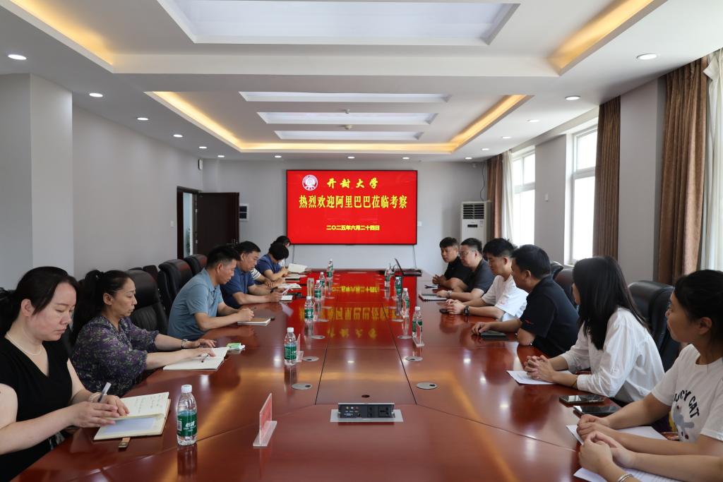 本站讯  6月24日上午,阿里巴巴全球数字人才教育联盟秘书长王振彬一行莅临365英国上市集团官网,就学校相关专业建设人才培养进行考察交流,副校长院继恒参加交流会。