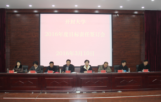 本站讯 3月10日下午,365官网在行政楼一楼会议厅召开2016年度目标责任书签订会。校领导张新梅、宋志敏、储建新、万是明、范金梅、何世玲、李新春和成芳出席会议,全校正教授、博士及副科级以上干部参加会议,会议由党委书记张新梅主持。
