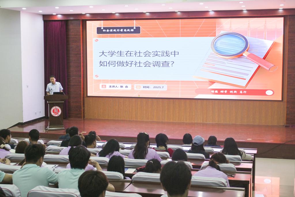 随后,张合以《大学生在社会实践中如何做好社会调查》为题讲授思政课,围绕 “传承党的社会调查优良传统:从历史中汲取力量”“掌握社会调查的主要方法:科学性与艺术性结合”“提升社会调查质效:避开误区,追求卓越” 三个方面展开讲解,为同学们开展暑期农村社会实践调研提供了宝贵而关键的方法论指导,助力大家更高效地开展调查研究、提升实践能力,在扎根社会的过程中实现成长与进步。
