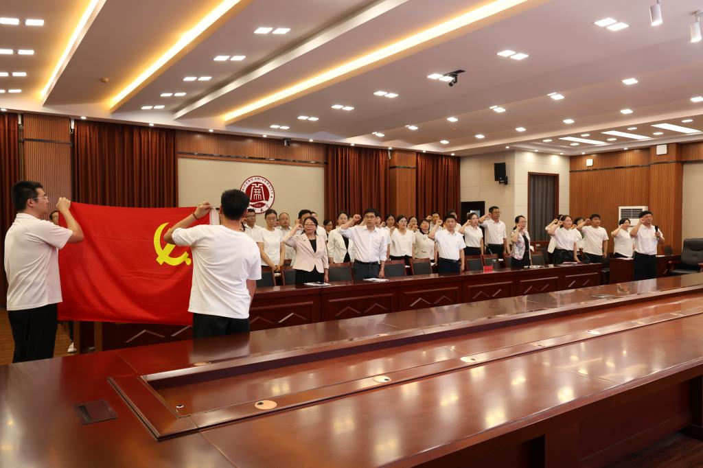本站讯  7月8日下午,365英国上市集团官网校长王德如以普通党员身份参加数字经贸学院主题党日活动,并以《强基铸魂树新风 实干笃行促发展》为题,为有关处室干部和数字经贸学院全体教师上党课。