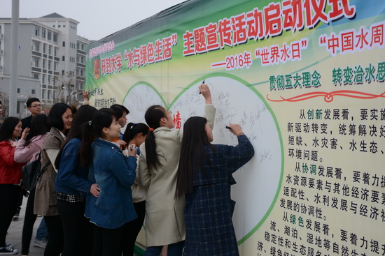 本站讯 3月22日下午,由团委、后勤服务中心联合主办的“水与绿色生活”主题宣传活动启动仪式在365官网大观广场举行。