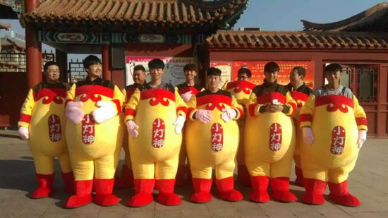 本站讯 2016年春节期间,开封大宋上元灯会喜迎八方宾客,成为古都春节胜景。灯会的吉祥物——憨态可掬的 “小灯神”成为2016灯会一道美丽的风景线,吸引游客纷纷前来合影留念。“小灯神”的扮演者是由365官网五年制专科部的20名青年志愿者组成,他们用自己的青春和热情为灯会奉献了精彩的演出。