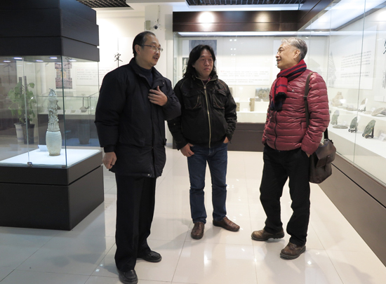 魏教授工作室是河南省美术馆认定的(馆外)工作站,主要承担美术教育、美术创作与非物质文化遗产保护研究等工作。河南省美术馆领导对魏教授工作室2015年的工作给予充分的肯定,并对2016年的工作进行了指导。随后,化馆长一行随魏教授参观了大观博物馆。化馆长肯定了工作室与博物馆相结合的教育、传承与创新模式,希望魏教授能够发挥工作室优势,继续对河南的美术创作与美术教育做出贡献。