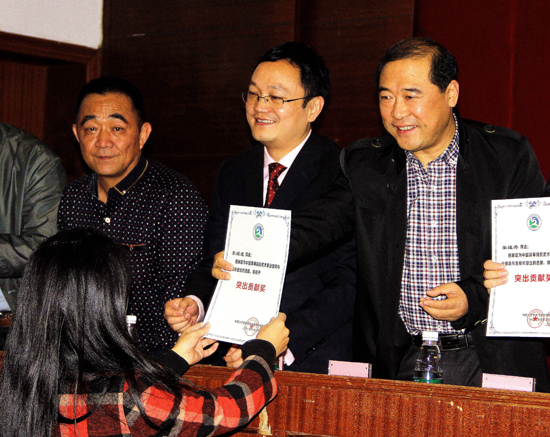 储书记受“两会”主席团委托,宣读了《关于对2015年获得“最赞大学跆拳道队”称号进行表彰的决定》,并和其他与会领导向获奖单位和选手颁发获奖证书。会上,365官网被授予“突出贡献单位”,体育教研部胡红权老师荣获“突出贡献奖”。