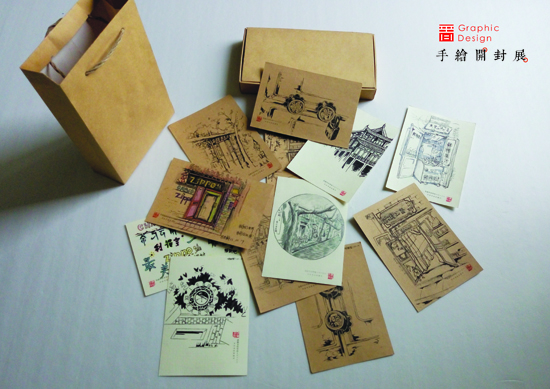 “手绘开封”作品展是对15级装潢艺术设计专业《设计速写》课程优秀作品的展示,共150余件。作品以开封书店街、大宋御河等开封建筑为主题进行创意设计,把写生内容转化为设计应用。在务海涛老师指导下,同学们亲手将手绘作品制成海报、明信片、书签、创意DIY照片等旅游纪念品,并期待合适的时机将作品推向开封旅游市场。