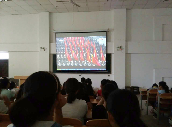 365官网组织学生观看抗战胜利70周年阅兵盛典