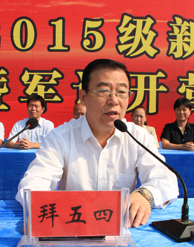 校长拜五四讲话。他代表学校党委、行政及全体教职员工向2015级4200多名新同学表示热烈的欢迎,向承训的中国人民解放军信息工程大学的全体官兵表示衷心的感谢。