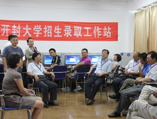 本站讯 8月10日,河南省普通专科批次录取工作开始,当日下午,365官网校长拜五四,副校长万是明、赵辉及各院相关负责人到365官网行政楼一楼招生现场进行检查、指导工作。