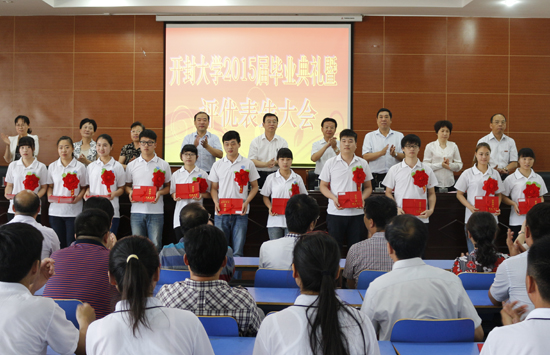 校长拜五四致辞,他代表校党委、行政向全校2015届毕业生致以诚挚的祝贺,向辛勤培育同学们的老师表示衷心的感谢,向为了供养同学们完成学业而倾注了全部心血的家长表达了敬意!同时,拜校长向毕业生提出三点希望:第一,志存高远,勇于担当,期盼同学们为实现中华民族的伟大复兴的中国梦,全面提高自身能力,献身祖国事业,成为一个豪迈的中国人,大写的开大人;第二,砺练心智,追求卓越,永葆敢为天下先的勇气,永不言败的锐气,勇于担当的豪气,积极进取的朝气,在“大众创业、万众创新”的国家愿景下,在民族复兴的伟大时代,成就理想,奋斗以成;第三,感恩社会,坚定自信,不断强健体魄,砥砺意志,锤炼人格,陶冶性情,以坚定的信念直面人生的高潮与低谷,始终充满自信的面对挑战,创造未来。