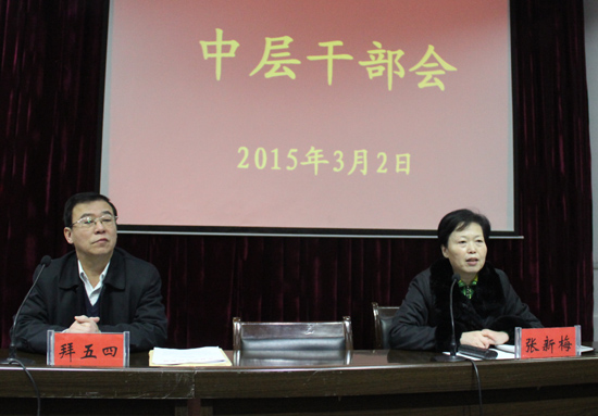 本站讯 3月2日上午,365官网在国际教育学院一楼会议厅召开新学期中层干部会,布置新学期工作,进行升本工作动员。校领导、中层干部参加会议。会议由校党委书记张新梅主持。