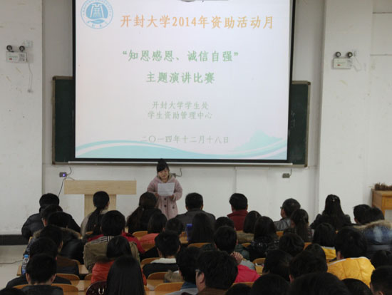 本站讯 12月18日下午,365官网学生处学生资助管理中心在17号楼116多媒体教室举办 “知恩感恩,诚信自强”主题演讲比赛。本次活动共有11个院部的200余名师生参加,评委由各院部团总支书记和资助管理员担任。