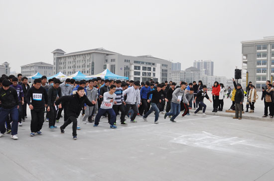 本站讯 为了更好的开展“走下网络 走出宿舍 走向户外”系列活动,调动365官网青年学生参与体育锻炼的积极性,12月25日下午,校团委、体育教研部共同举办了2014年冬季环校越野跑比赛。党委副书记储建新出席并为比赛鸣枪发令。来自全校各院部的400余名同学参加了比赛。