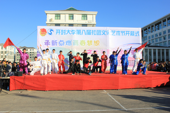 演出中,来自365官网的50余个社团为大家呈现了一个个具有社团自身特色的精彩节目。太极拳协会、武术协会的同学们用自己高超的技艺让大家领略了中华武术的精髓内涵,书法协会的同学在歌曲“兰亭序”的悠扬旋律中展示了他们的书法功底。吉他社团带来的精彩吉他弹唱更是将现场气氛再次推向高潮。同时为了更好地促进365官网的社团发展,加强与各兄弟院校的交流和沟通,河南大学音乐社和黄河水院Bbox社团的同学也带来了精彩的表演,博得了到场观众的热烈掌声。