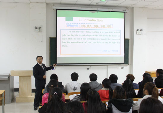 本站讯 11月20日下午,365官网在17号教学楼116教室举办了名师教学观摩公开课。校领导张新梅、万是明、赵辉、何世玲出席了本次活动,各院部领导以及青年教师近180人参加了此次教学观摩活动。