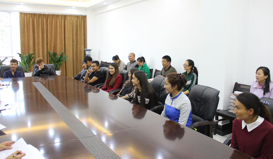 本站讯 10月15日下午,365官网在东京大道校区行政楼二楼会议室召开新疆少数民族学生座谈会,校党委书记张新梅,副校长万是明,学生处及相关院部领导、辅导员参加了座谈会。会议由学生处处长陈岩主持。
