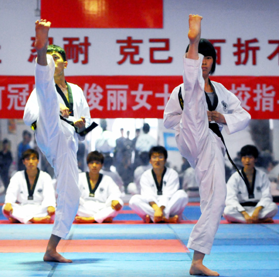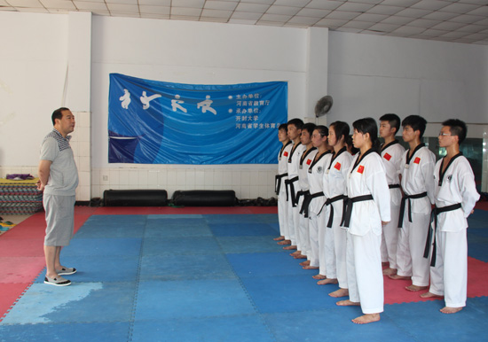 本站讯 “2014年中国大学生跆拳道锦标赛”将于7月21日至26日在广西师范大学举行。365官网在坚持常年训练的基础上共选拔12名队员参加丙组七个小项的角逐。为继续发挥和保持365官网跆拳道队在该竞赛项目的优势,学校成立了教练组,同时对队员进行集中强化训练。校党委副书记储建新担任教练组长,带领组员科学制定训练计划,合理安排运动强度,效果明显;队员们训练刻苦,他们纷纷表示不畏强手,力争在竞争激烈的赛场上赛出水平,赛出风格,为学校、为开封争得荣誉。