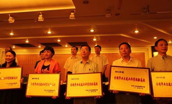 校长拜五四(前中)参加“全国毕业生就业典型经验高校”颁奖典礼