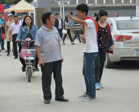 青年志愿者为新生家长指引方向