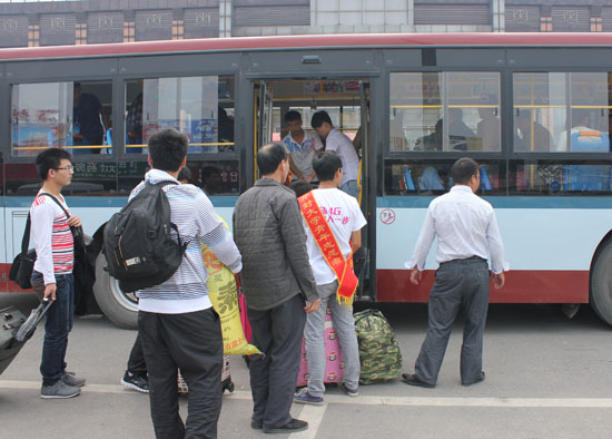 青年志愿者在开封火车站迎接新生