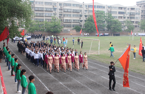 首先进行的是第十二届体育文化节运动员入场式,14个院部代表队依次入场,运动员们精神饱满,意气风发,展现了开大人和谐统一、积极进取的精神风貌。
