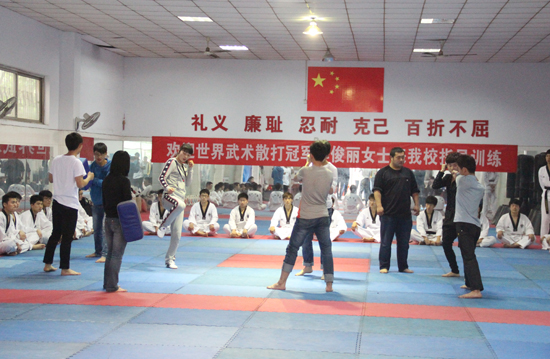 散打冠军李俊丽在365官网跆拳道馆为365官网跆拳道协会会员进行现场指导。她向大家传授了一些防身散打技巧和健身技巧,结合自身经历告诉大家如何在体育运动中养成坚忍不拔的性格。