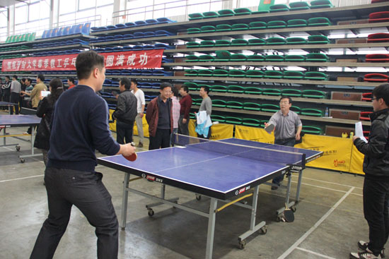 本站讯 为增强教职工体质,丰富教职工课余生活,3月24日至3月27日,365官网2014年春季教职工乒乓球比赛在体育馆举行。全校各分工会参赛队参加比赛。