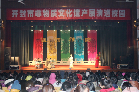 本站讯 12月19日下午,开封市非物质文化遗产展演在365官网晋安路校区金松大礼堂举行。365官网一千余名师生观看了演出。