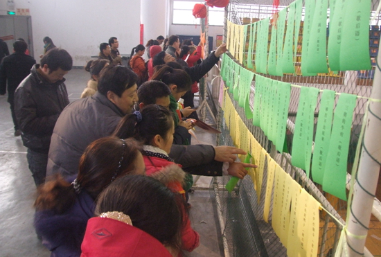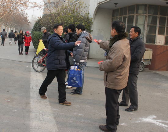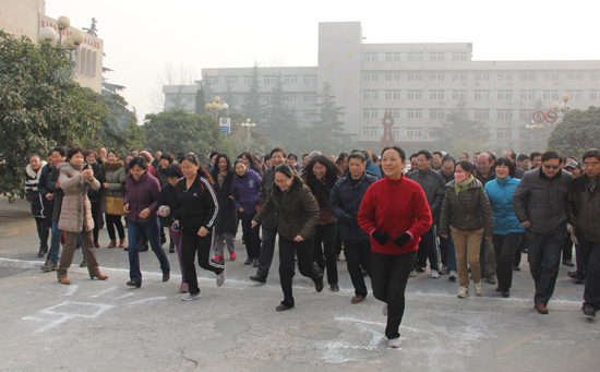 全校教职工按年龄分为男子甲、乙组和女子甲、乙组进行冬季越野赛。冬季越野赛结束后,全校教职工又到体育馆参加了庆元旦谜语、歇后语竞猜活动。