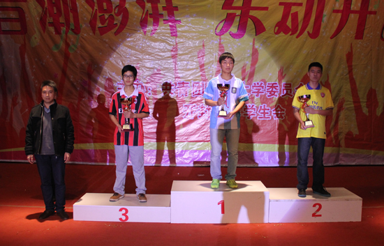 中国电信开封分公司东区总经理时浩恒为2013年迎新综合运动会足球比赛获奖院部学生代表颁奖