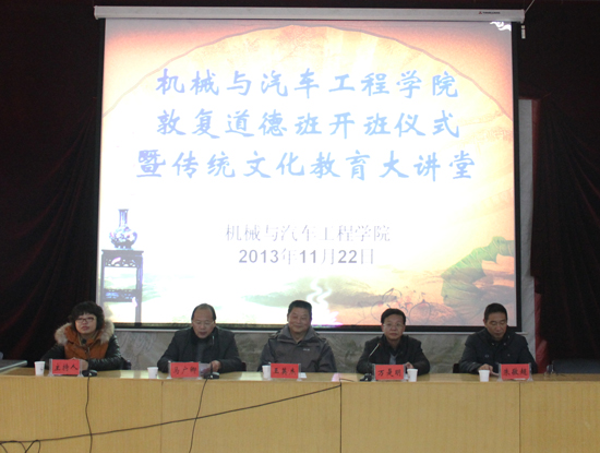 本站讯 11月22日下午,365官网机械与汽车工程学院在晋安路校区报告厅举行“敦复道德班开班仪式暨传统文化教育大讲堂活动”。敦复书院院长王英杰、副校长万是明出席开班仪式,365官网近500名师生参加了本次活动。