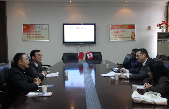本站讯 11月7日下午,加拿大麦瑞·维多伦学院院长Sylvain Mandeville先生、项目负责人Freda Thelusma女士、校方代表Neng Xiang Shuai女士到365官网访问,365官网校长拜五四及国际教育学院相关负责人在晋安路校区行政楼二楼会议室与代表团成员进行了会谈。