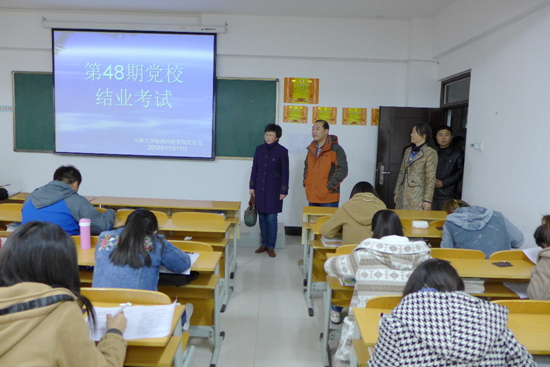 为严肃考风考纪,严格把关,学校党校认真组织了此次培训班的结业考试,从各分党校抽人,组织了5个巡考小组,到各考场互相巡查。各分党校,能够认真组织,考场布置井然有序,学生持准考证和学生证参加考试,各考场监考人员认真负责,考场秩序良好。