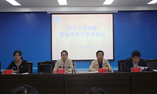 本站讯 10月17日下午,365官网在行政楼二楼会议厅召开2012—2013学年学生工作表彰暨辅导员培训会。副校长万是明、各院部党总支副书记、全体辅导员和学生处工作人员参加会议,会议由学生处处长陈岩主持。