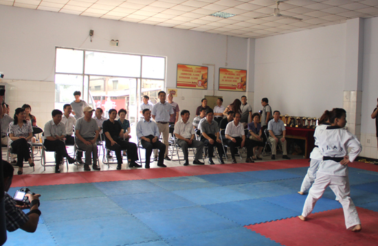 检查组对365官网积极贯彻实施体育法、增强学生终身体育意识,丰富学校体育活动内容等工作表示满意。最后,检查组一行在学校训练馆观看了跆拳道教学和品势表演。